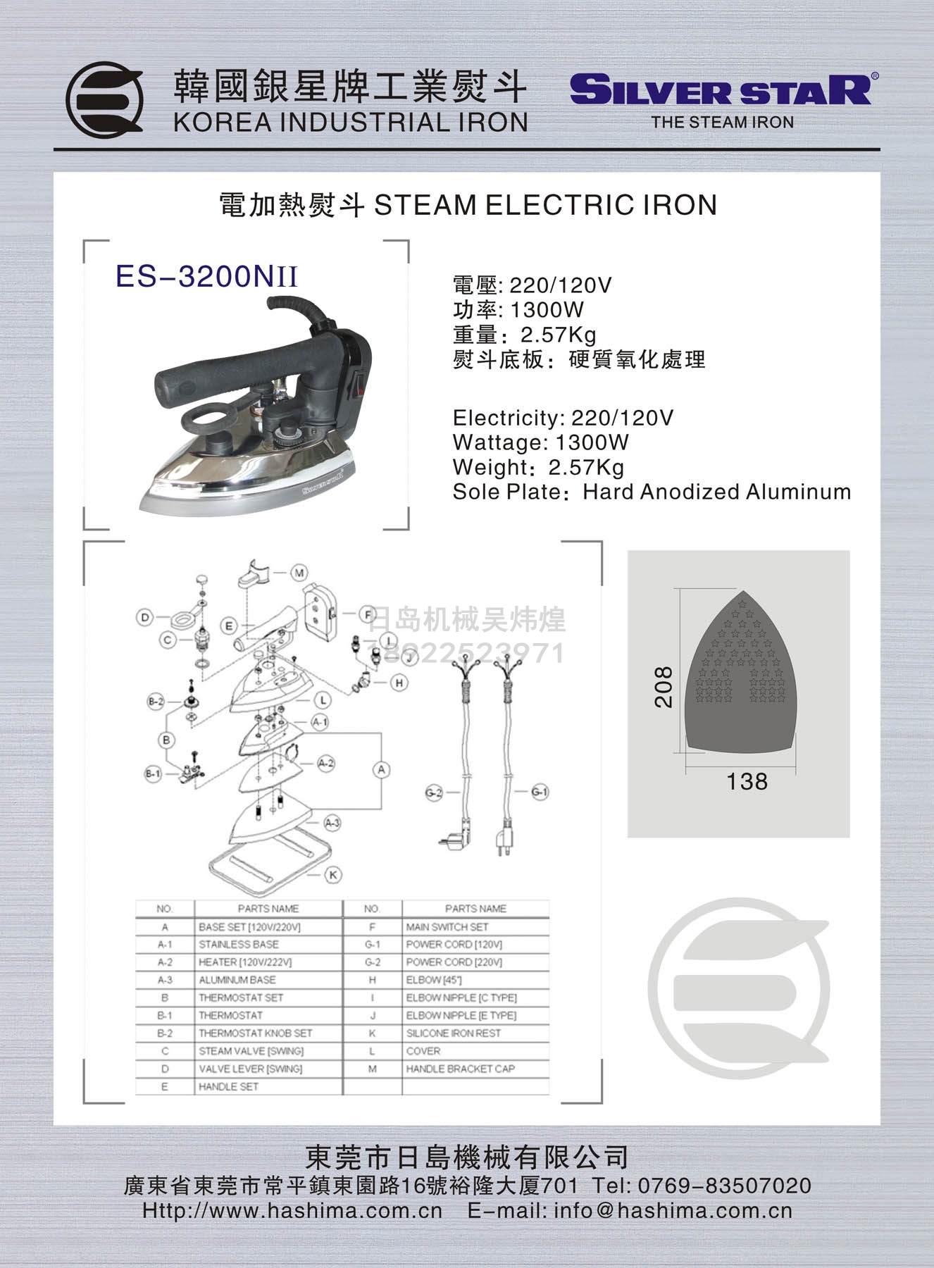 • SILVER STAR銀星牌ES-3200NII電加熱熨斗/燙斗
