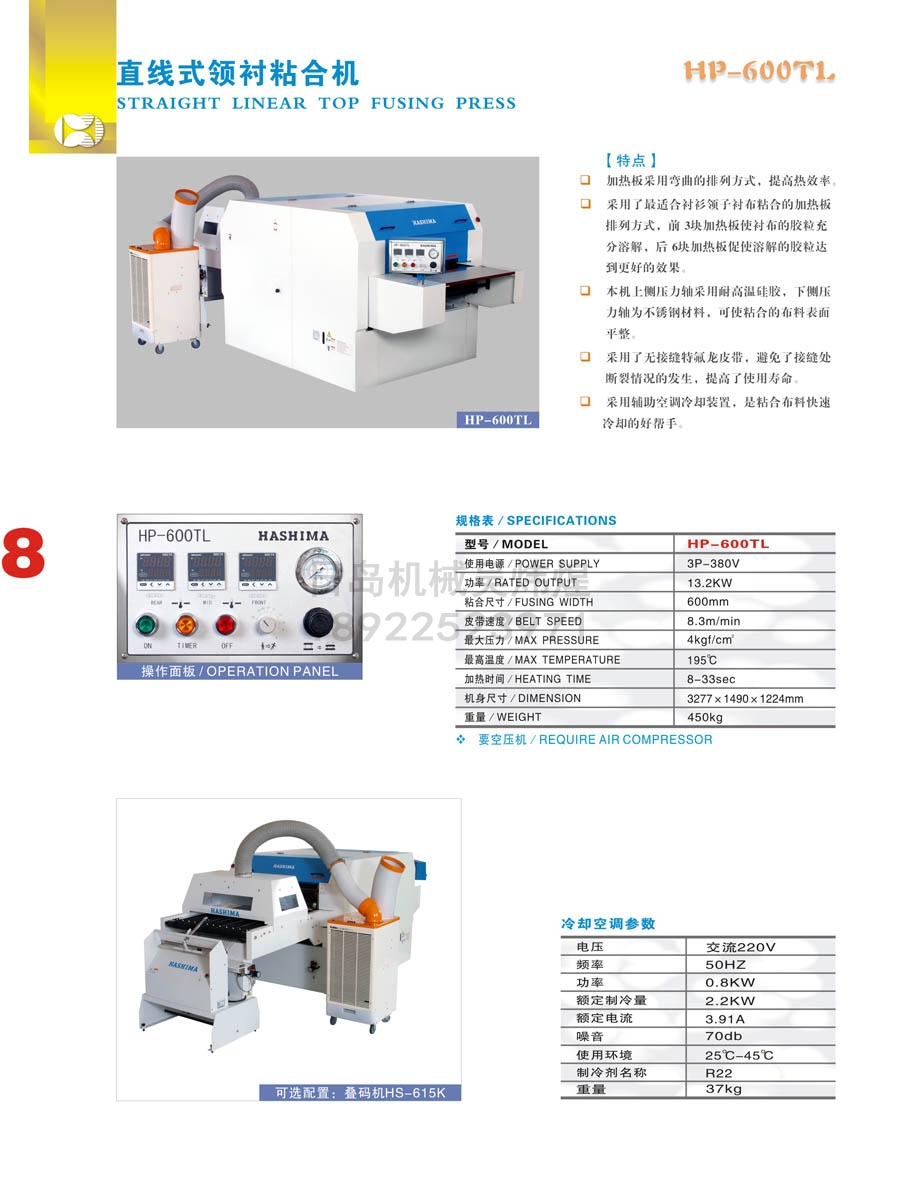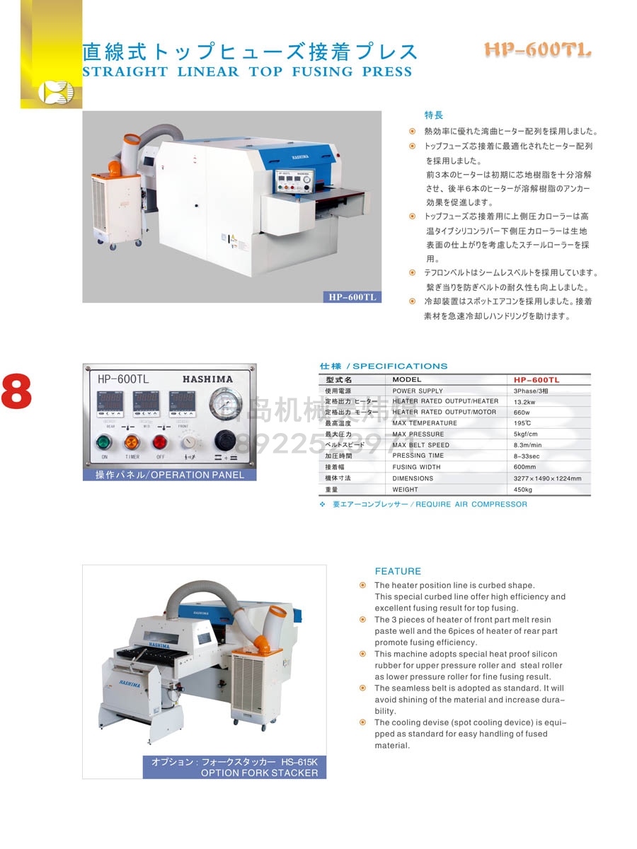 • 羽島HASHIMA HP-600TL直線(xiàn)式領(lǐng)襯粘合機