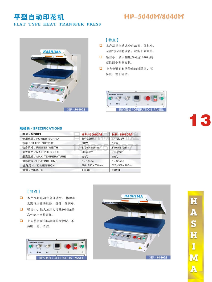 羽島HASHIMA HP-5040M/HP-8040M平型自動(dòng)印花機