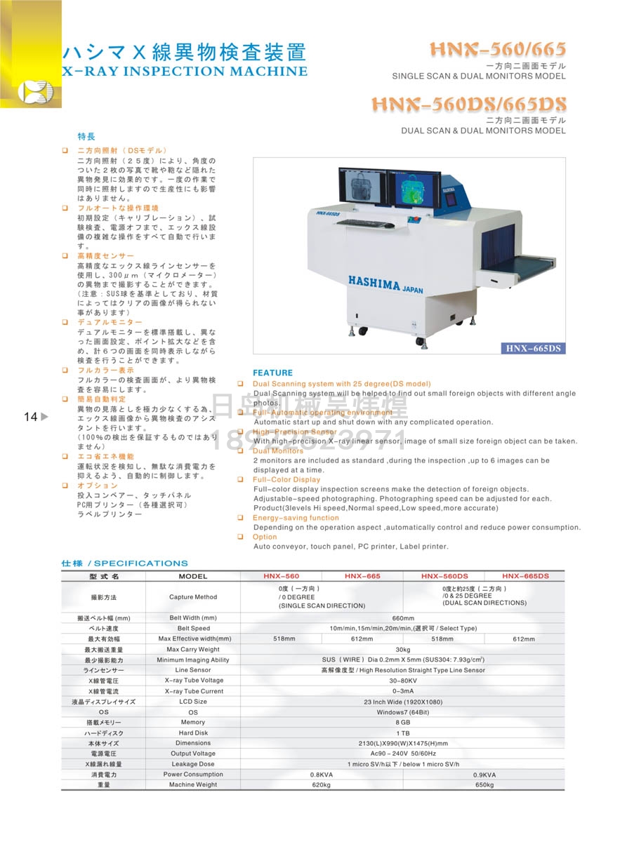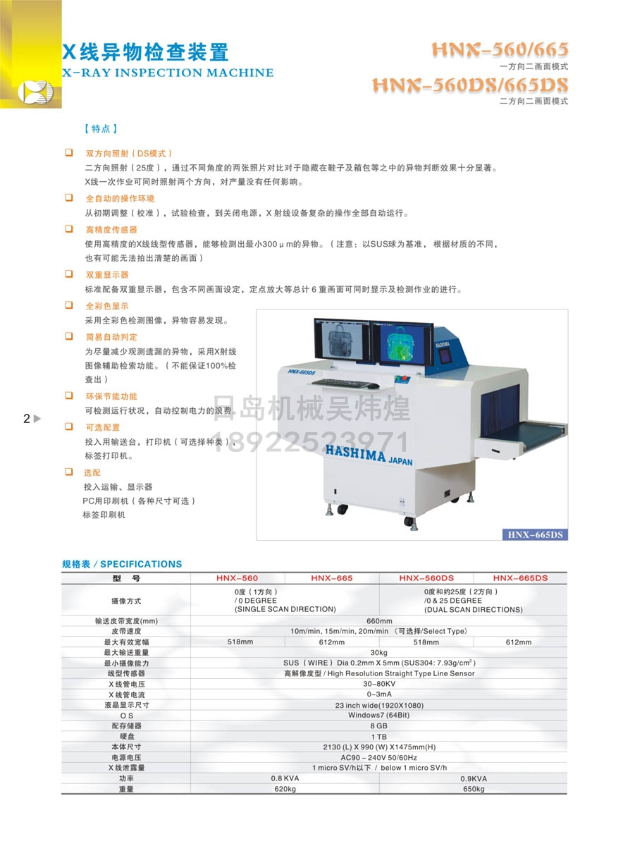 HASHIMA羽島HNX-560/665 X射線(xiàn)異物檢測裝置